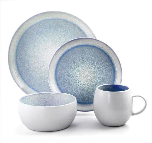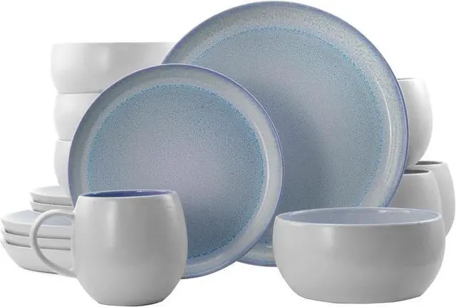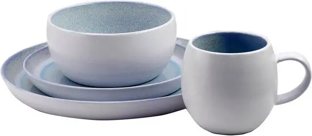 Add a beautiful accent to your table with the Elama Mocha 16 Piece Stoneware Dinnerware Set in Blue. A full service for 4, each dish is creatively crafted into a unique and contemporary shape, adding a little something more special to meal time. Beautifully colored in elegant Mocha with an inner Mauve design, this tableware set will surely set a tone at dinner time. Each plate is microwave safe for easy heating and dishwasher safe for easy cleaning.