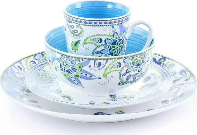 Add a beautiful accent to your dining table with the Elama Blue Fiesta 16 Piece Round Porcelain Dinnerware Set in an arrangement of bright and beautiful blue and green mandala design. Each dish is creatively crafted with a beautiful mandala design and beautifully colored in vibrant tones of blues and greens. Porcelain construction is ideal for special occasion gatherings and every day use. Each plate is microwave safe for quick reheating and dishwasher safe for easy cleaning.