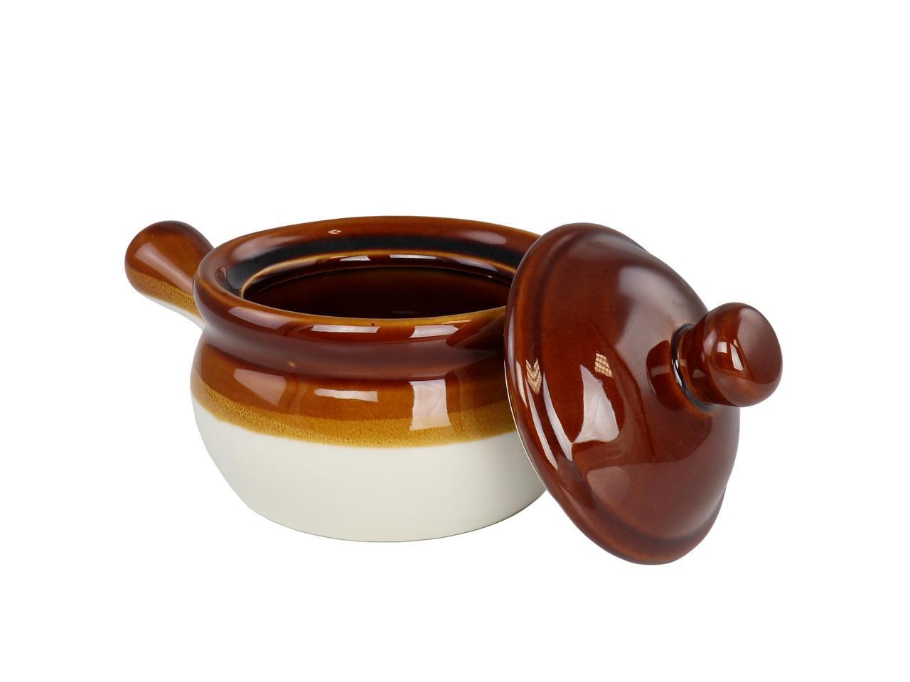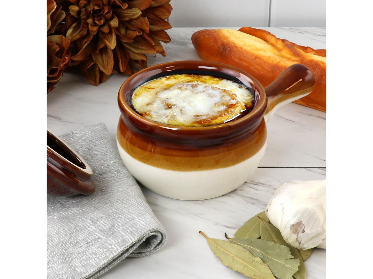Elama 4 Piece Long Handle 15 Ounce French Onion Soup Bowl with Lid