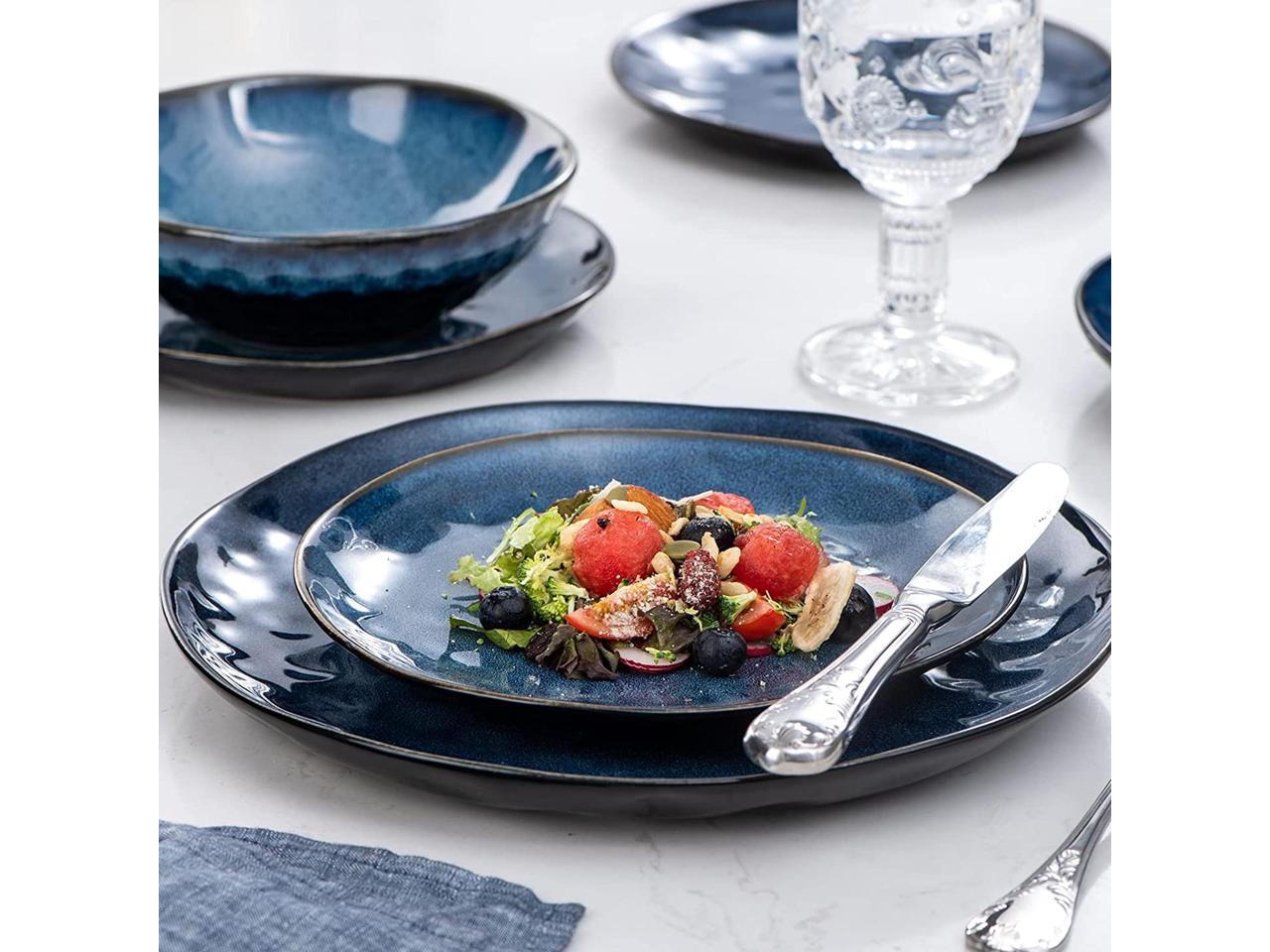 Elama Samara 12 Piece Stoneware Dinnerware Set in Blue