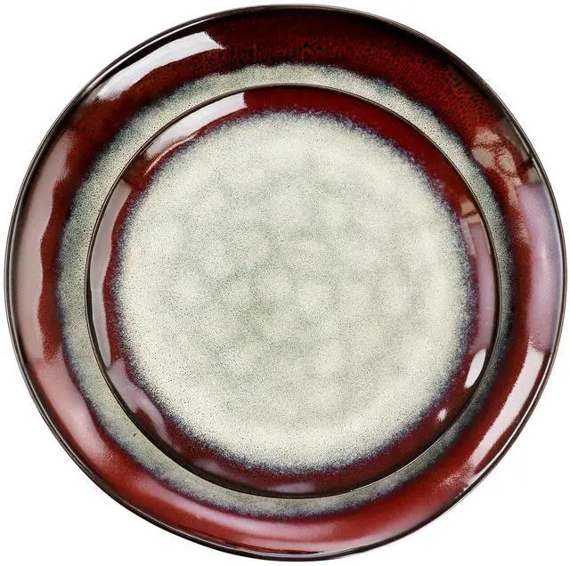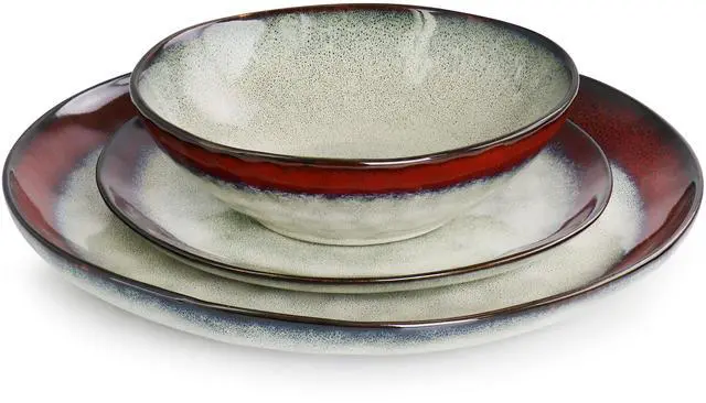 Elama Samara 12 Piece Stoneware Dinnerware Set in Red and Taupe is ideal for every day use. Textured design is also great to add a little style to your table setting when you are expecting guests. This charming set features an organic rounded shape and ombre style colored rim that highlights food beautifully, making your meals stand out. Constructed of sturdy stoneware, this set can be microwaved and used in the dishwasher time and time again for long lasting use!
