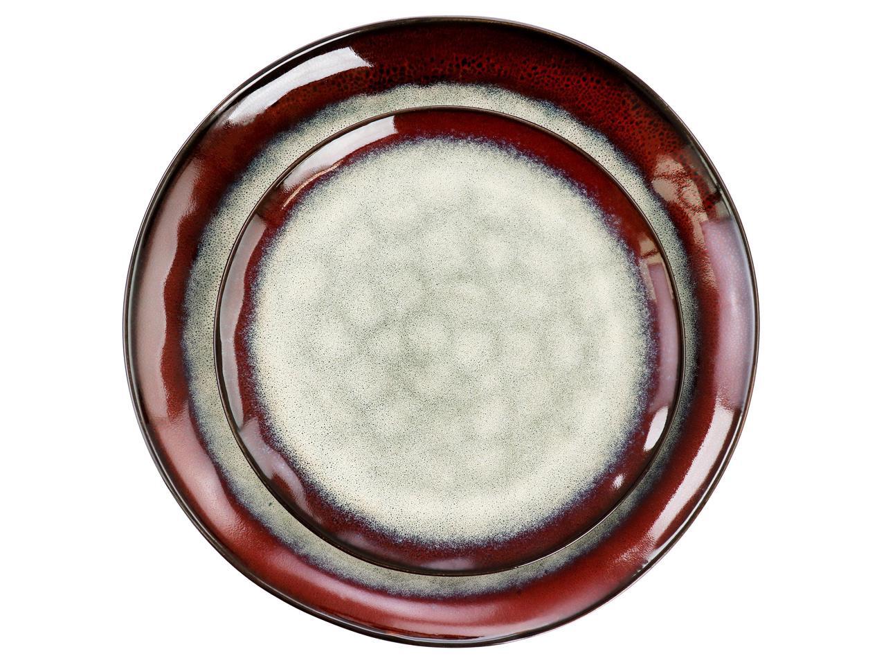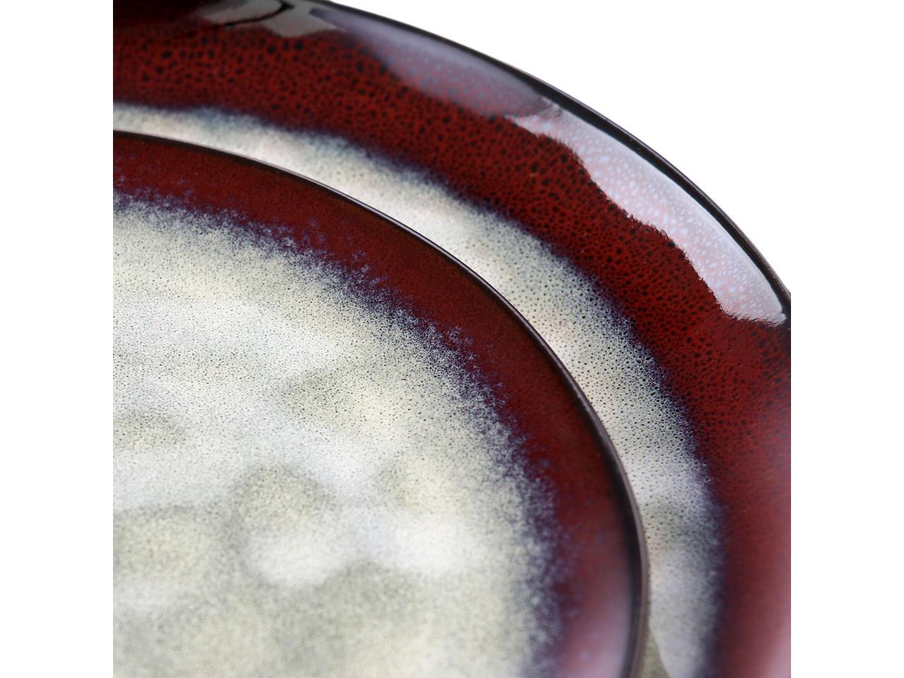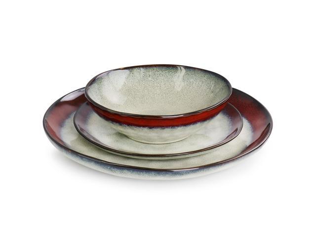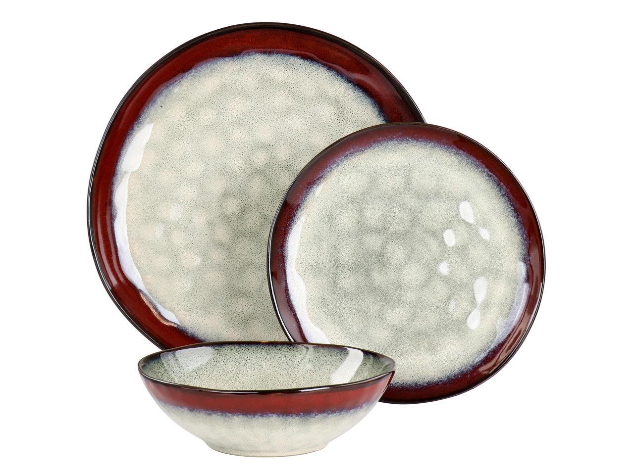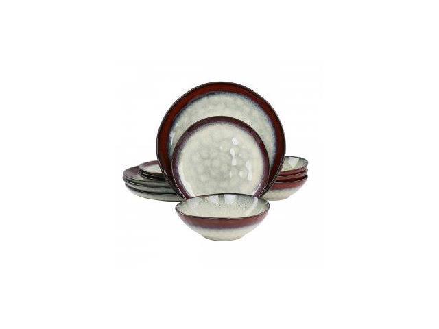 Elama Samara 12 Piece Stoneware Dinnerware Set in Red and Off White