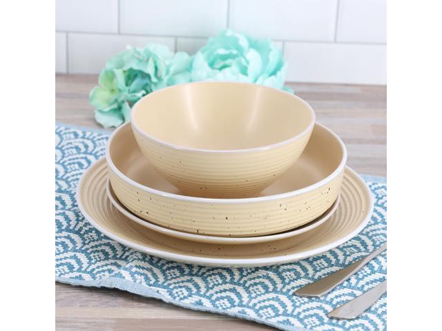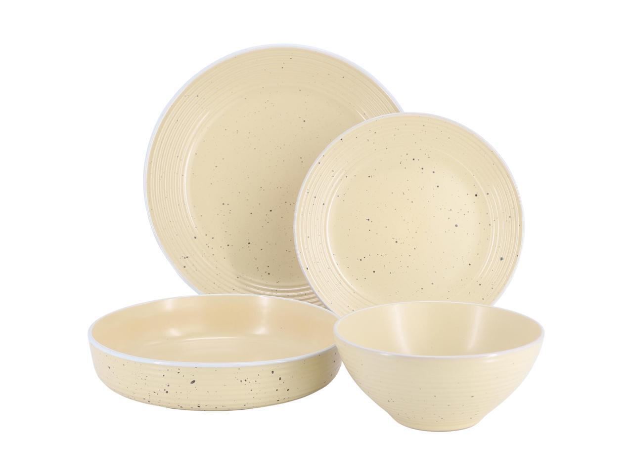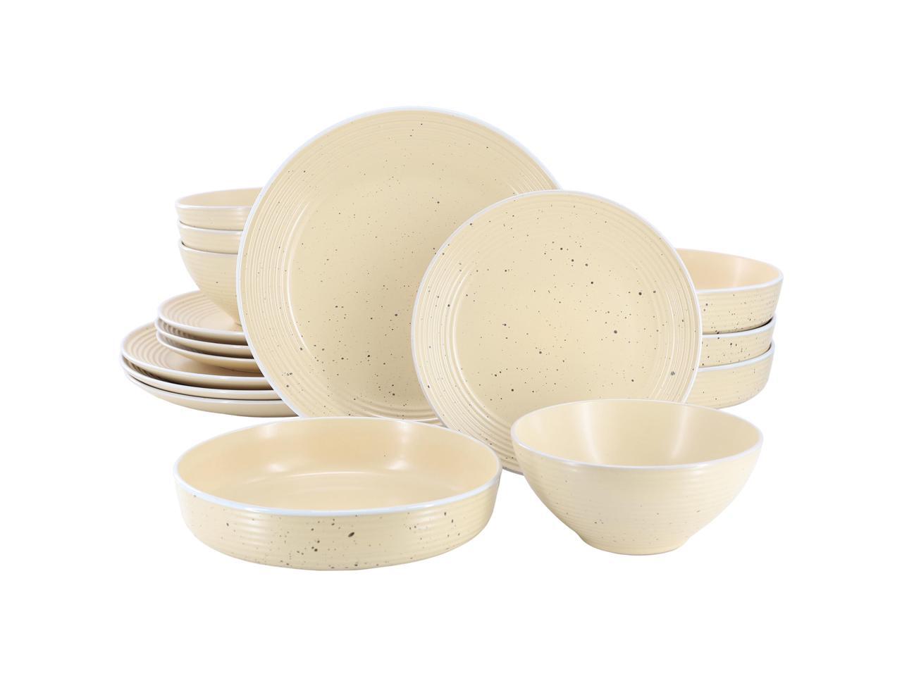 Elama Emilia 16 Piece Double Bowl Stoneware Dinnerware Set in Cream Yellow