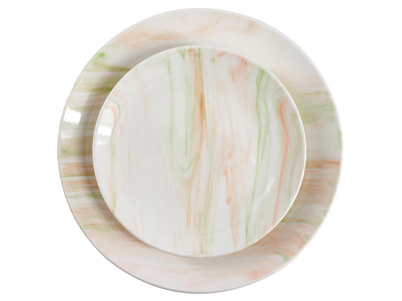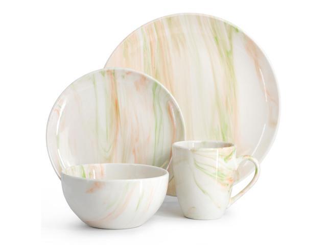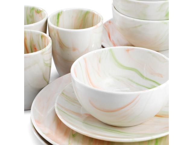 Elama Fine Marble 16 Piece Porcelain Dinnerware Set in Orange and Green