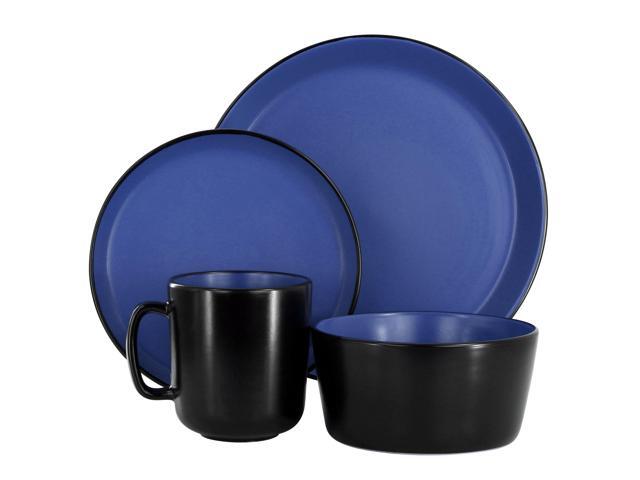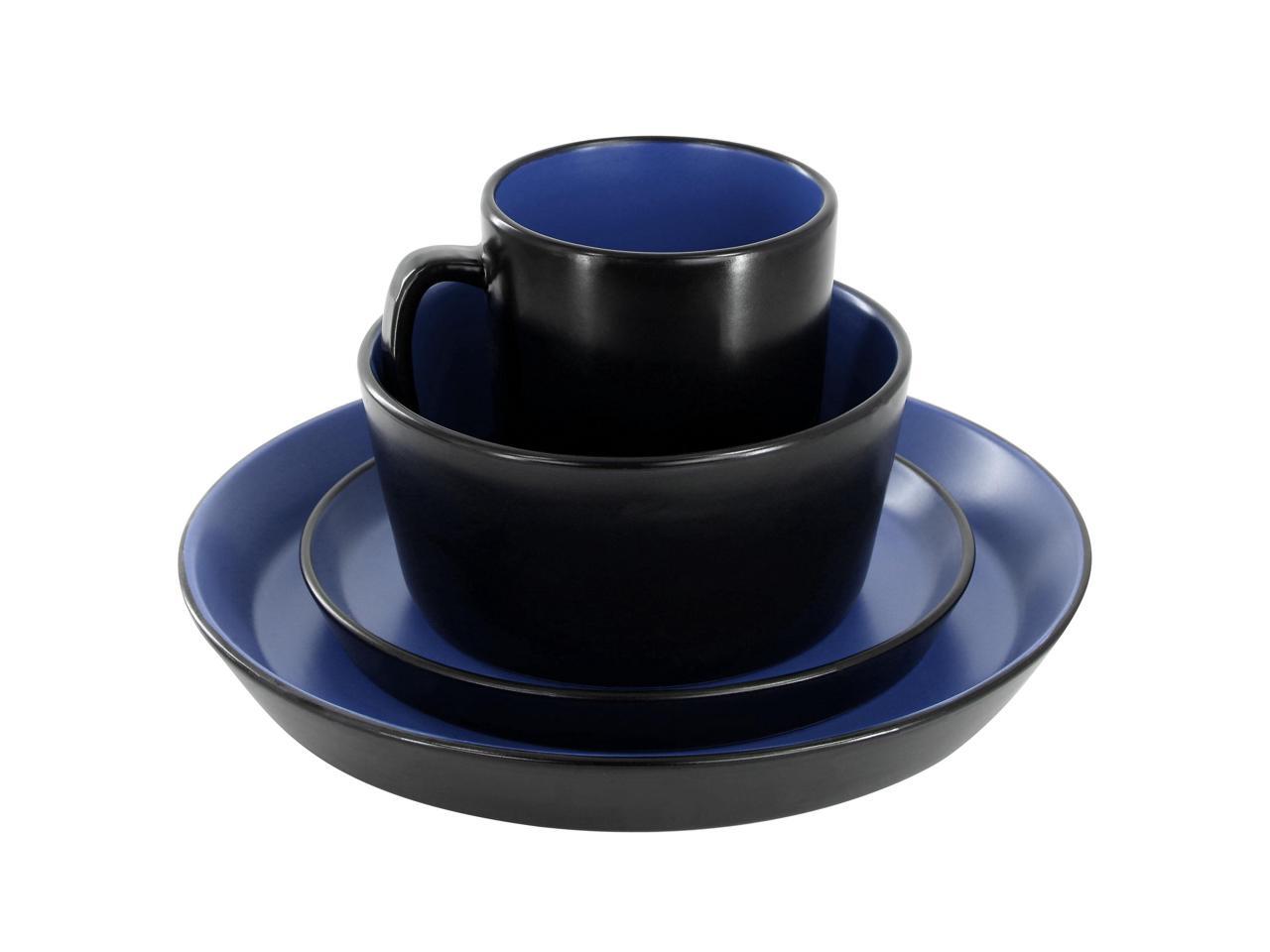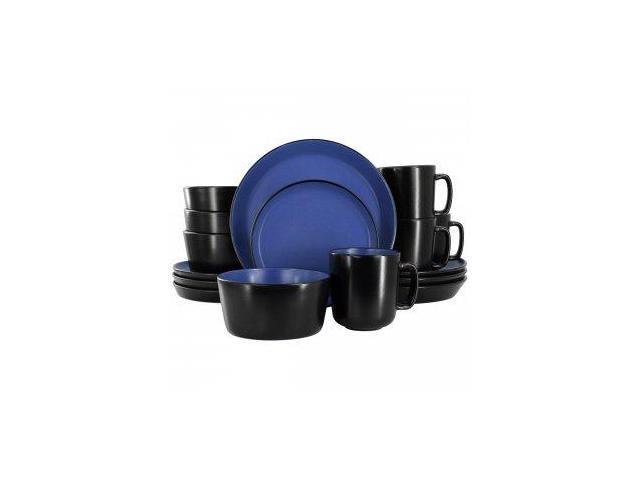 Elama Bacarra 16 Piece Stoneware Dinnerware Set in Two Tone Black and Blue
