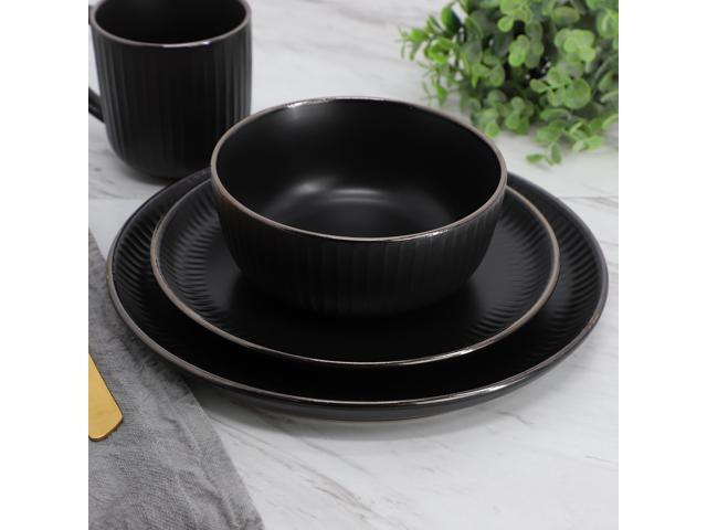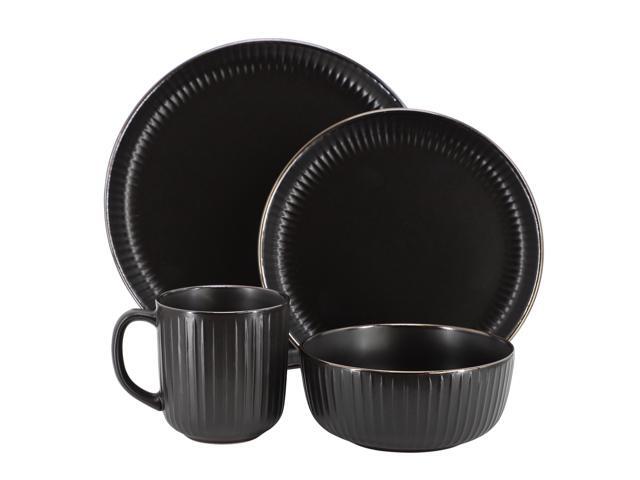 Elama Leo 16 Piece Stoneware Dinnerware Set In Black