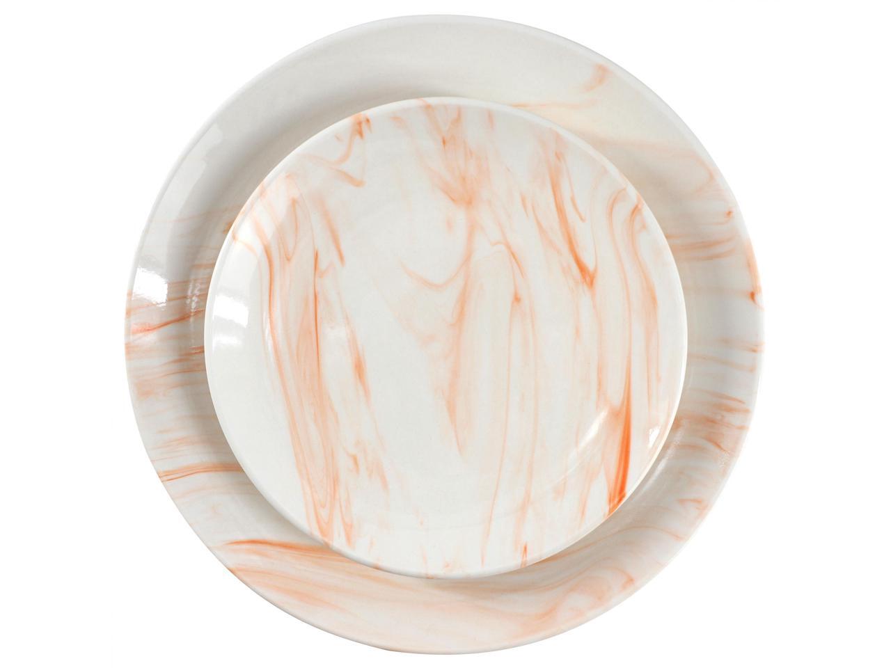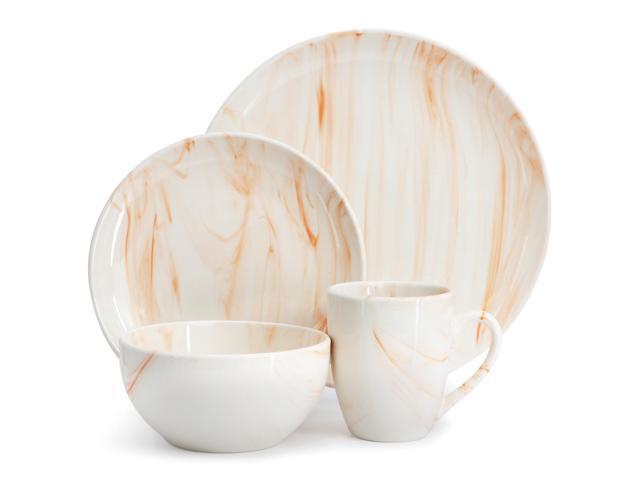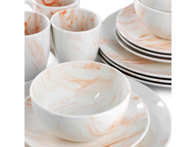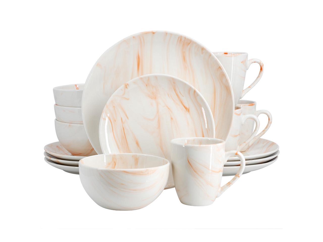Elama Fine Marble 16 Piece Porcelain Dinnerware Set in Orange