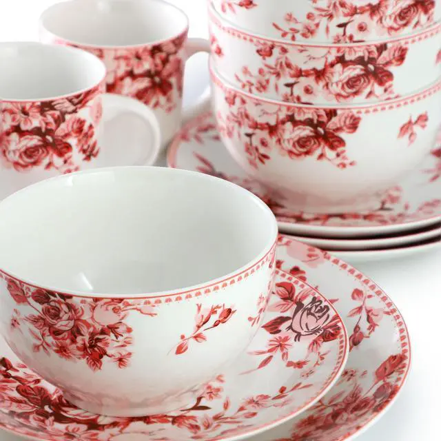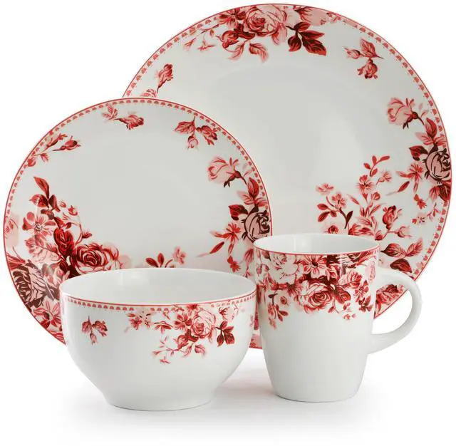 Enhance your dining experience with the Elama Traditional Red Rose 16 Piece Stoneware Dinnerware Set. Crafted from high-quality stoneware, this dinnerware set boasts exceptional durability, making it perfect for both everyday meals and special occasions.