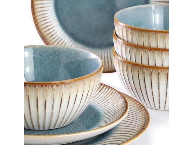 Set includes: Four cereal bowls, four mugs, four salad plates, and four dinner plates