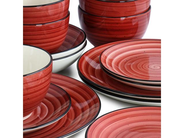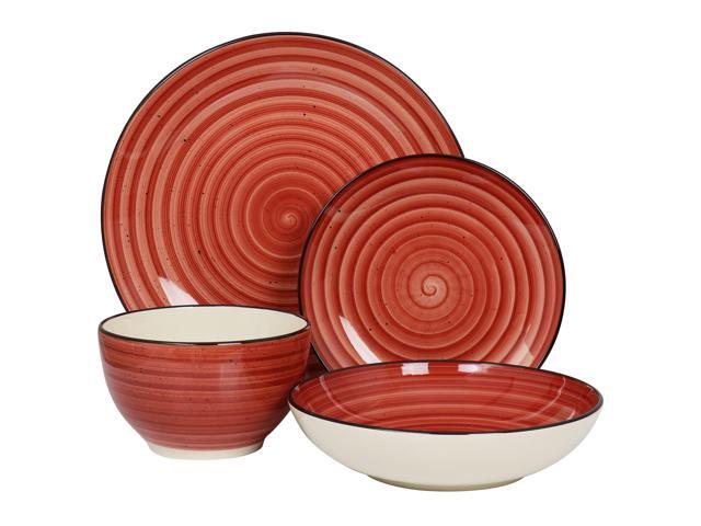 Elama Gia 24 Piece Round Stoneware Dinnerware Set in Red