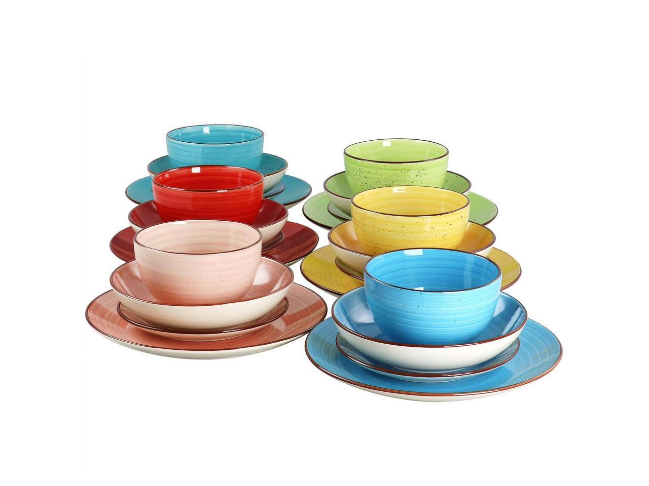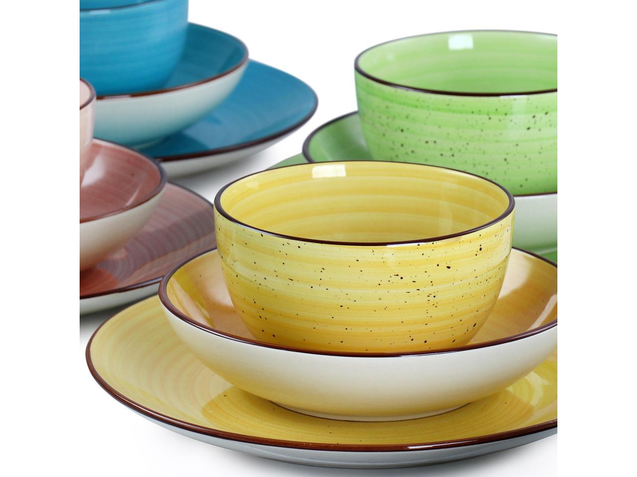 Elama Sebastian 24 Piece Double Bowl Stoneware Dinnerware Set in Assorted Colors