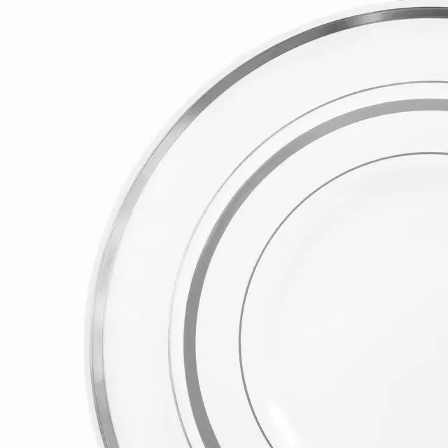 Elevate your next event with the Elama 150-Piece Disposable Plastic Dinnerware Party Set, designed to serve up to 25 guests. This elegant White set features a clean and sophisticated Silver trim, offering a perfect balance of style and functionality for weddings, parties, or any special occasion. Made from high-quality food-grade plastic, each piece is BPA-free, ensuring a safe dining experience for all guests. The spill-free design and secure base ensure durability and stability, even in more lively settings, while the disposable nature makes cleaning up quick and hassle-free.