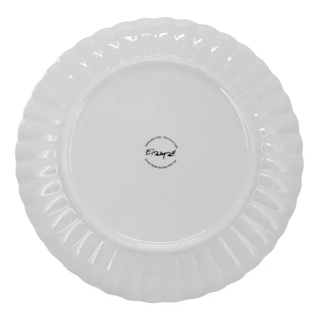 The Elama Jane 16-Piece Round Scalloped Porcelain Dinnerware Set in White brings timeless elegance to your dining table with its sleek design and refined details. Crafted from high-quality porcelain, each piece features a beautiful scalloped pattern along the rim, adding a touch of sophistication to any meal. The crisp white finish enhances the presentation of your favorite dishes, making this set perfect for both casual dining and special occasions.