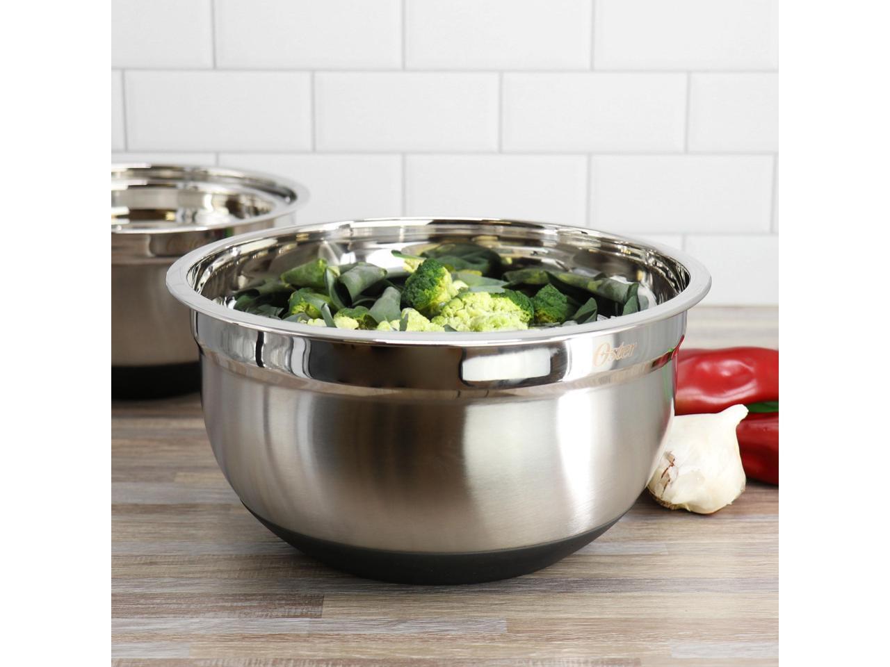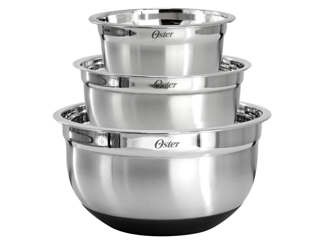 Oster Oswalt 3 Piece Mixing Bowl Set with Non-Slip Bases in Silver