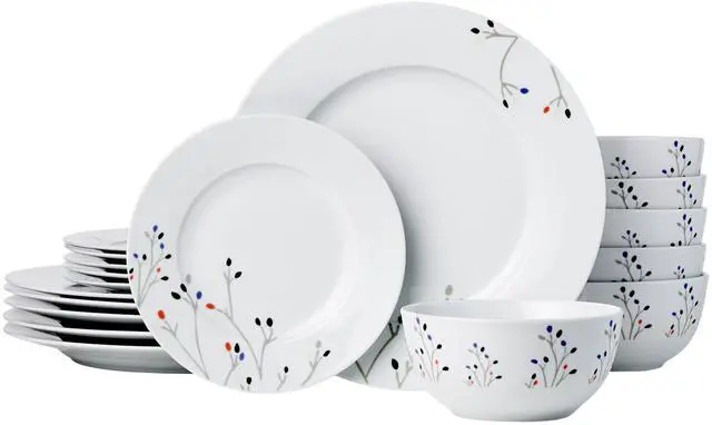 Dinnerware Set, Microwave and Dishwasher Safe, Service for 6, 18-Piece Complete Kitchen, Plates, Dishes, Bowls, Branches