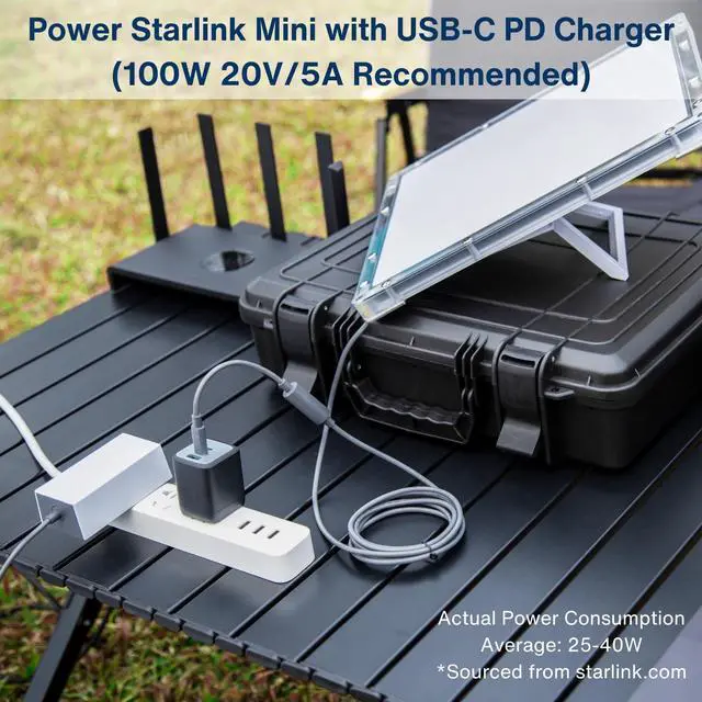 Plug-and-Play: Perfect for quick setup and disconnection, especially outdoors. Simply connect the cable to your Starlink Mini's official DC power cable, then plug it into any USB-C power source to instantly power your device.