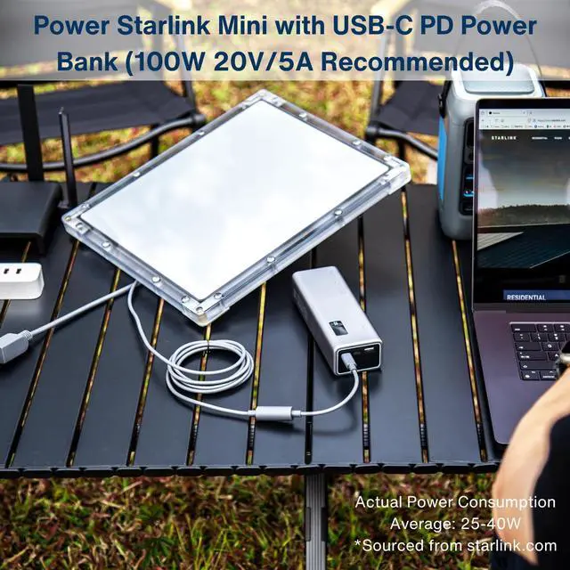 Power Starlink Mini with USB-C Devices: This DC female to USB-C male adapter cable lets you power your Starlink Mini with USB-C devices like portable PD power banks, ensuring reliable outdoor use and continuous satellite connectivity without the need for a traditional power source.