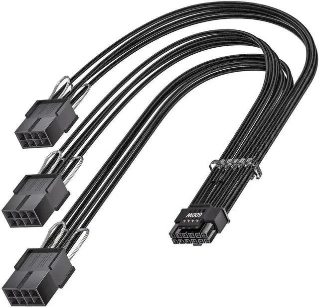 16pin(12+4) Male to 3x8pin(6+2) Female PCI-e 5.0 Sleeved Extension Cable