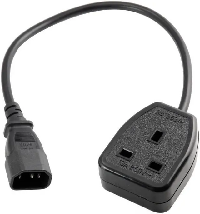 Power extension cable 100% Brand New and High quality. Connector: IEC C14 Male plug to UK 13A Female Cable Length: about 6 ft/1.8m Light weight,easy to use and plug. UK 13A female socket