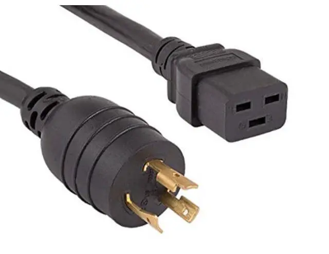 12 AWG 20A 250V Heavy-Duty Power Cord (NEMA L6-20P to IEC 320 C19) Featuring a C19 female connector on one end and an L6-20P male plug on the other, this power cord is the ideal solution for powering a server in a data center. Simply connect the C19 receptacle to your network device and plug the L6-20P connector into an L6-20R wall outlet. This power cord is rated for 250 volts and 20 amps of power. This heavy-duty 12 AWG cord features a fully molded design for maximum durability and long life.All of our power cords have UL and CSA certification and are1 00% RoHS complaint.