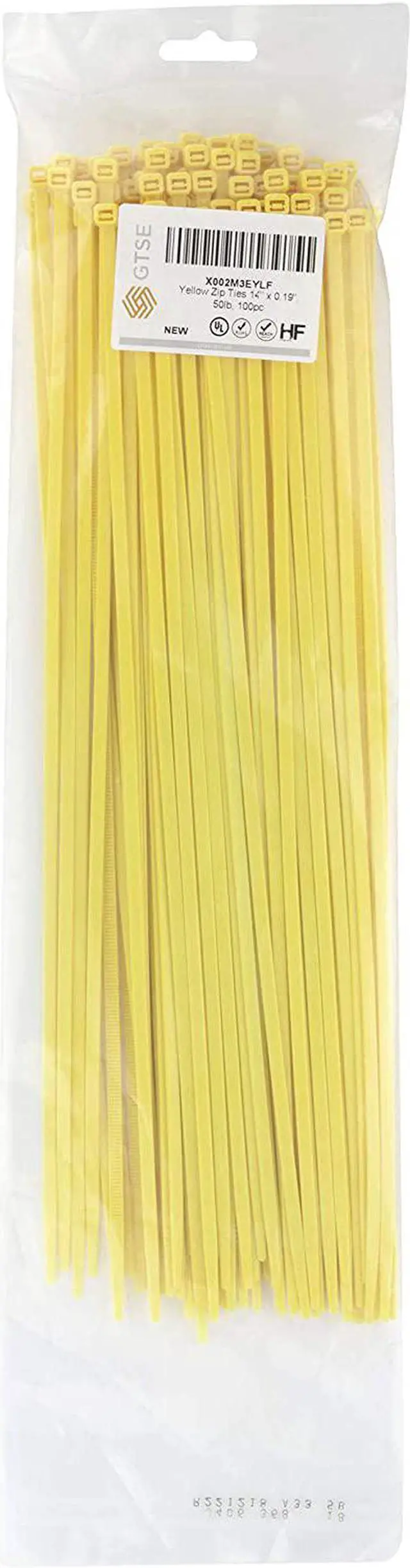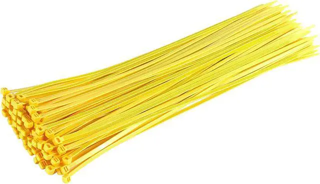 What's in the package? You'll receive 100 durable, high quality yellow nylon zip ties, which can be used indoors and outdoors.