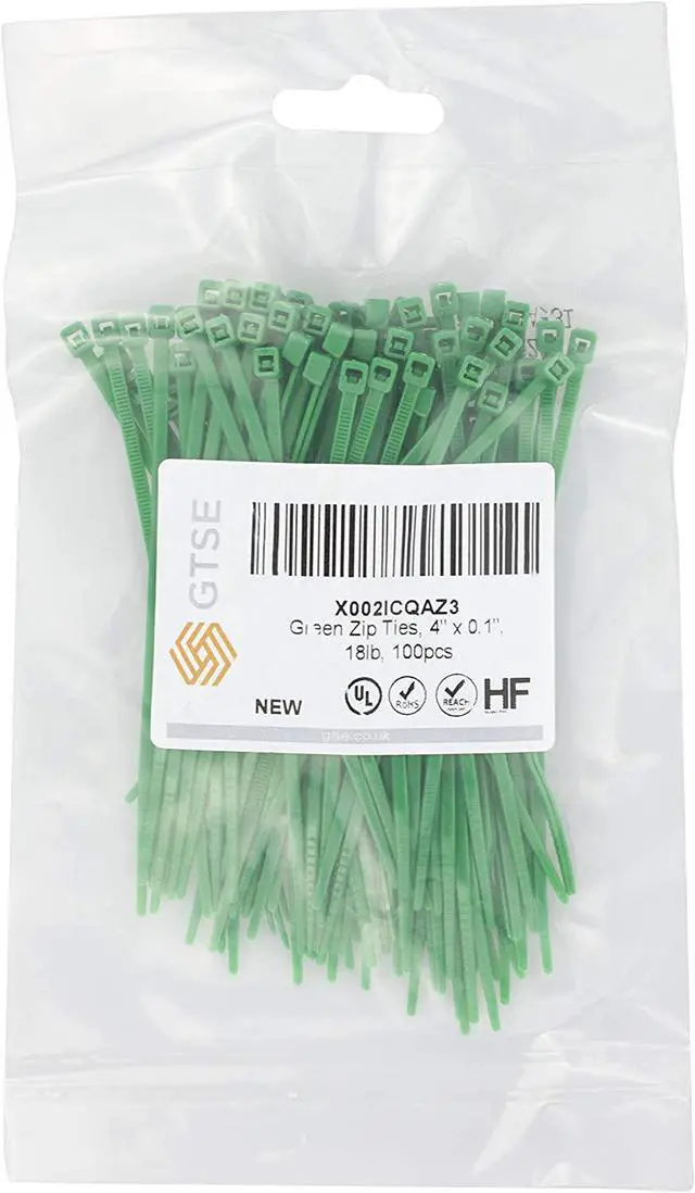 What's in the package? This order guarantees you a 100-pack of high-quality green nylon zip ties, which have been designed for both indoor and outdoor use.