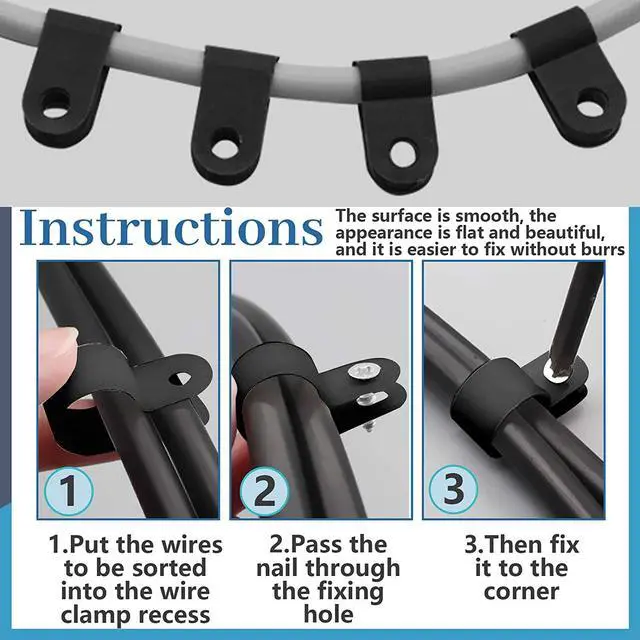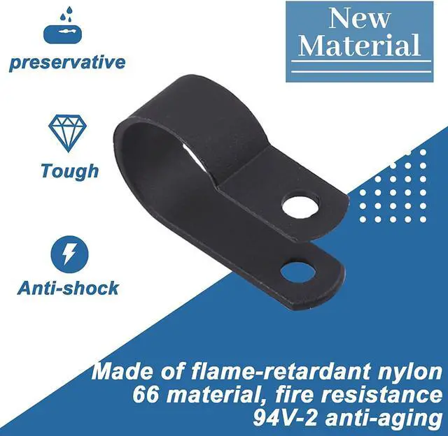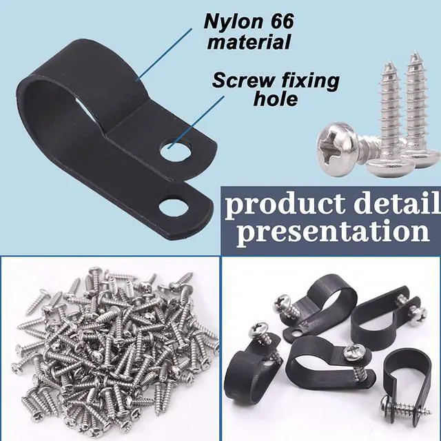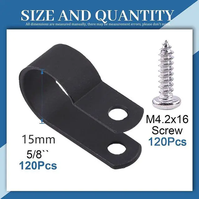 Glarks 120Pcs 1/2 Inches Black Nylon Screw Mounting R-Type Cable Clip Wire Clamp with 120Pcs Screws for Wire, Cable, Conduit and Cable Conduit Kit