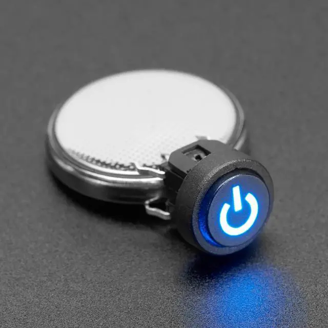 This Mini Illuminated Momentary Power Button is an adorable breadboard-friendly tactile switch that has a built-in LED. It provides a simple way to add a tactile switch and a colorful universal power symbol to your project.