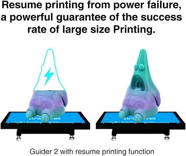Resumes printing from power failure: print stops without damaging 3d models when suffer sudden power failure, resumes printing from where it stops when power is back on.