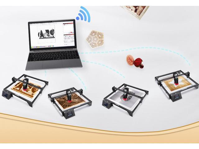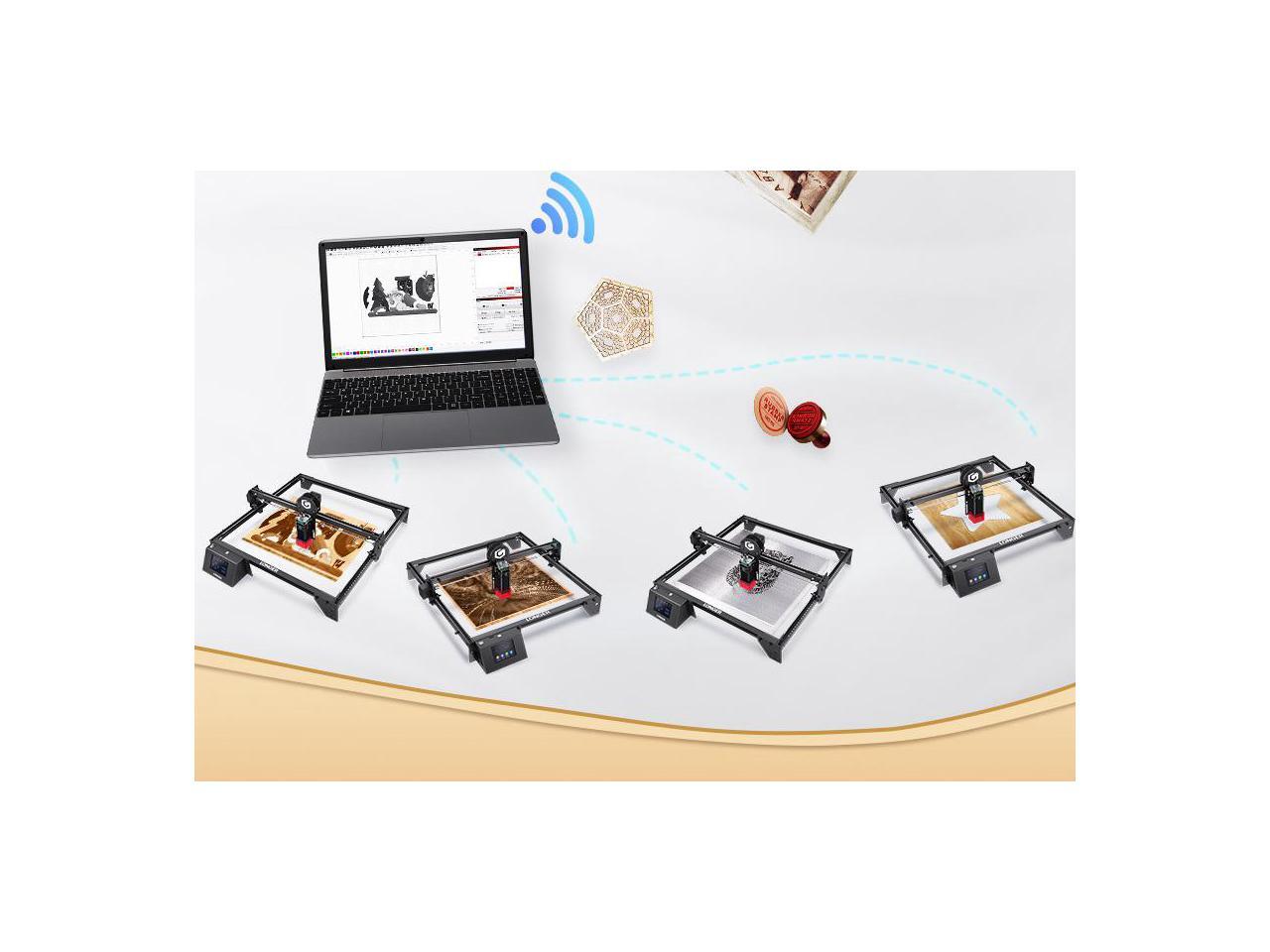- One computer controls multiple engravers. The Ray5 10w can work parallelly with control of only one terminal, you can set a number of units engraving and cutting together and improve the production efficiency.