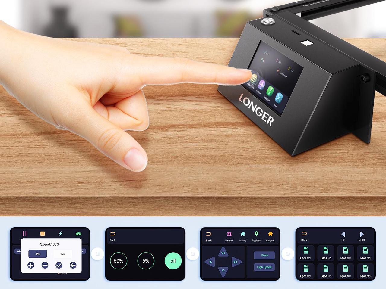 - Offline engraving & cutting are supported with a 3.5" color touch screen. No computer connection is needed while engraving & cutting, making the operation easier for you to meet various DIY requirements. 3.5" Touch Screen is available both on Ray5 5W and 10W.