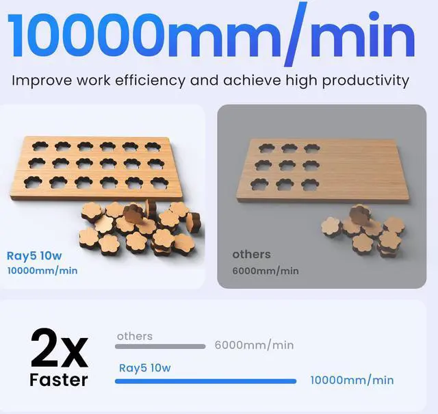 Swift Speed: Equipped with dual-beam technology, the high-power laser engraving machine achieves an impressive maximum engraving speed of 10, 000mm per minute, showcasing outstanding production capabilities.