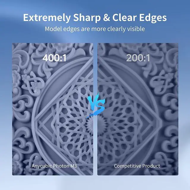 Details Above Everything Photon M3 features 4K+ ultra-high resolution and a high contrast ratio of 400:1 for more vivid details and sharper model edges, giving you great print quality.