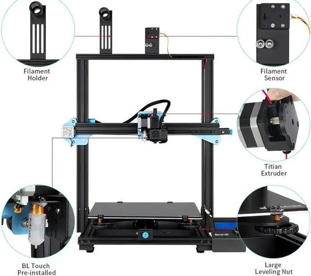 SILENT BOARD & BLTOUCH PREINSTALLED - TMC2208 board has a resolution upwards of 256 individually smaller, high-res steps and thus less noise is generated in the coils of the motor. Auto-leveling SV03 will make adjustments to ensure the bed and nozzle are at an optimum distance throughout the printing, which improves bed adhesion and print quality.