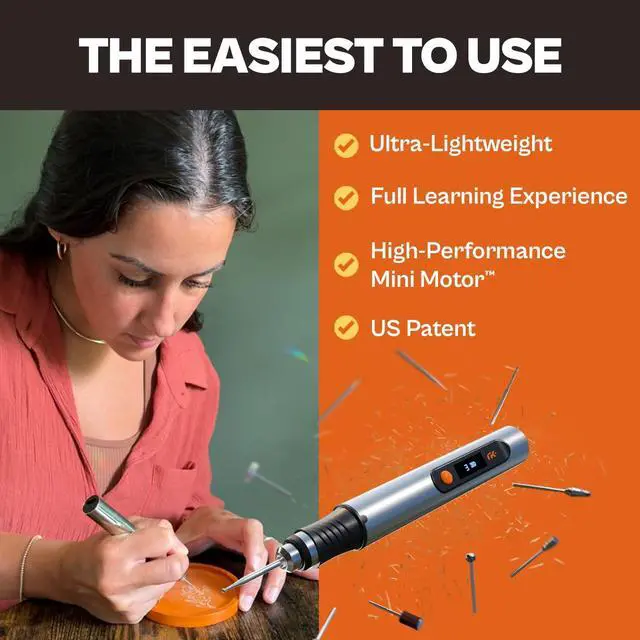 | Creations on 50+ Surfaces | 20 Engraving Bits | 5 Stone Grinding Bits | 5 sharp bits | Rechargeable Lamp Base |