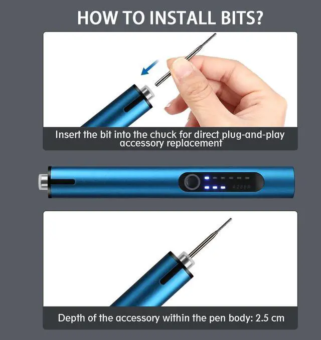 Multi-Function Accessory Set: Engraving Pen Set includes 30 engraving bits, 2 drilling bits, and 1 tungsten carbide grinding bit. The tungsten carbide material offers superior wear resistance and hardness, ensuring long-lasting durability without easy wear.
