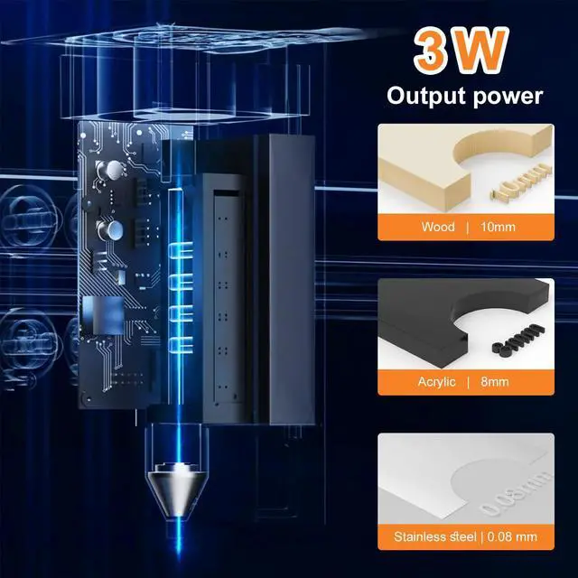 High Precision and Fast Engraving: 48W laser engraving machine is equipped with a 0.08x0.1mm compressed beam laser head and precise rails. With a maximum processing speed of up to 7000mm/min, it achieves intricate and precise engraving effects. Customers can create high-precision designs, text, and fine details