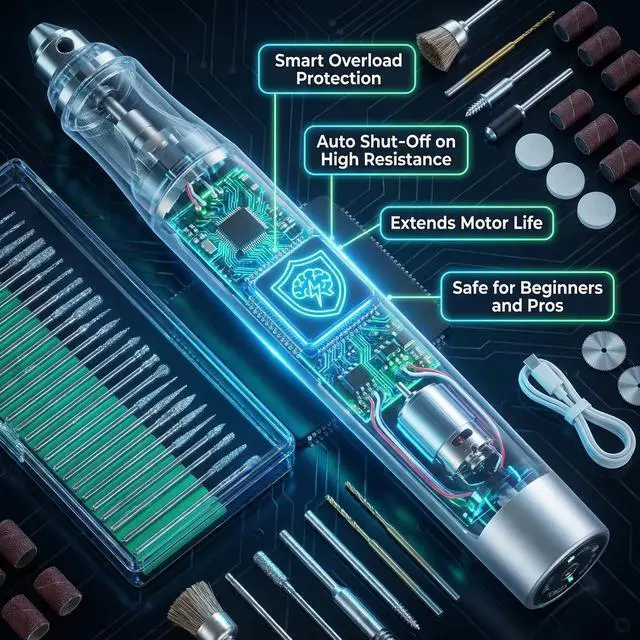 Smart Overload Protection For Longer LifeA built-in intelligent safety chip shuts off power when resistance is too high, protecting the motor and extending the life of your engraving pen. Safe for beginners and experienced crafters.