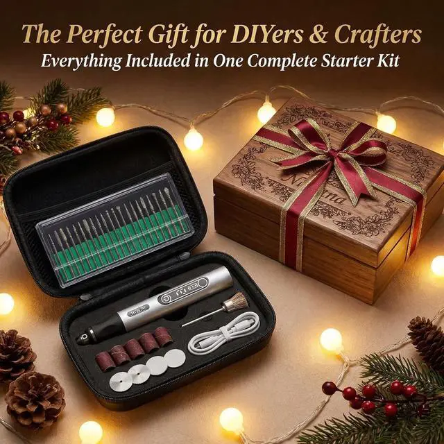 Complete 54-Piece Engraving & CraftingIncludes enraving bits, grinding bits, polishing bits, and carving tips for creating detailed designs, personalizing gifts, and decorating jewelry, metal, glass, ceramic, plastic, leather, and more