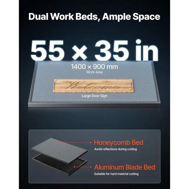 VEVOR 130W CO2 Laser Engraver, 55 x 35 in, CO2 Laser Engraver Cutter Machine with Water Chiller, 2 Way Pass Air Assist, 1200 mm/s Speed, Autofocus Engraving Cutting Machine, for Wood Acrylic Glass