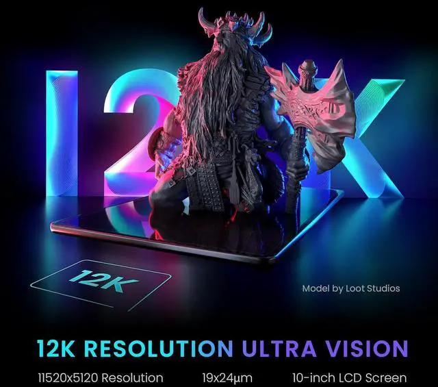 10-Inch 12K Mono LCDWith a 10-inch 12K mono LCD boasting a stunning resolution of 11520x5120 and an XY resolution of 19x24m, ELEGOO Saturn 3 Resin 3D Printer is capable of producing highly detailed and intricate models with ease, at a printing speed of up to 70mm/h. The 9H hardness tempered glass protects the LCD screen from scratches and damage caused by resin dripping or penetration.