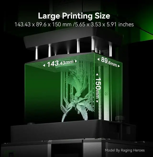 Large Build VolumeThe 153.36×77.76×175 mm³/6.04×3.06×6.89 inch build volume provides you with enough space for daily creations without sacrificing printing accuracy.