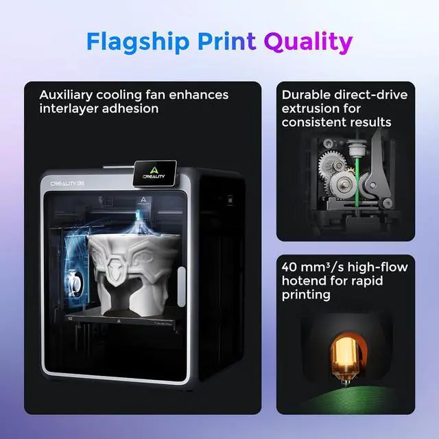 Creality Official K2 Combo(A) 3D Printer, Multi-Color Printing with CFS, 600mm/s High-Speed, AI Cameras, Full Auto-Leveling, Dual Z-Axis, 260x260x260mm Build Volume