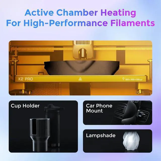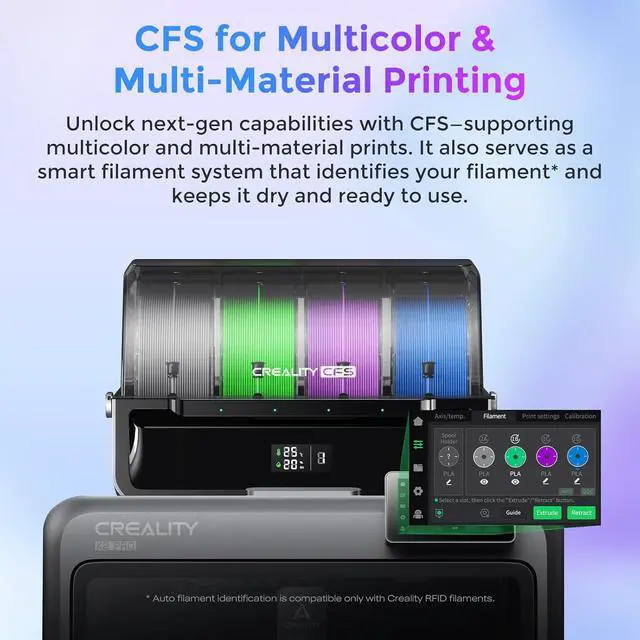 16-Color Multi-Material PrintingConnect up to 4 CFS-enabled modules to achieve vibrant 16-color prints without post-painting. Compatible with high-temp materials (PLA/ABS/PETG/PLA-CF) thanks to a 300°C nozzle and 100°C heated bed, reducing waste and enhancing creativity.