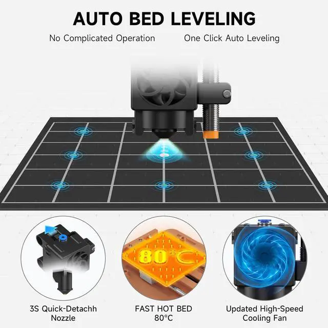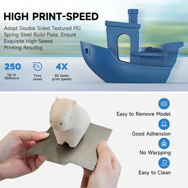 Heatable Platform & Stable-PrintUpgrade small 3d printer adopts heatable PEI spring steel magnetic flexible platform(max 60°C), anti-warping, improves the printing effect of models. Built in Teflon PTFE Copper Hose for filament-feeding more smoothly. New cooling system with 6pcs heat dissipation aluminum sheet and high-speed fan, enhance the quality of printing and avoid clogged nozzle.