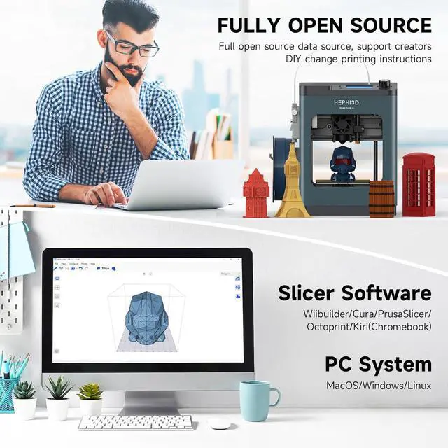 Fully Open-SourceTina2S mini 3d printer is compatible with Wiibuilder, Cura, Kiri(Chrome book), PrusaSlicer software, you can diy your own models and fast upload to print on computer, as well as support USB transfer. Fully open source supports command edditing, etc.