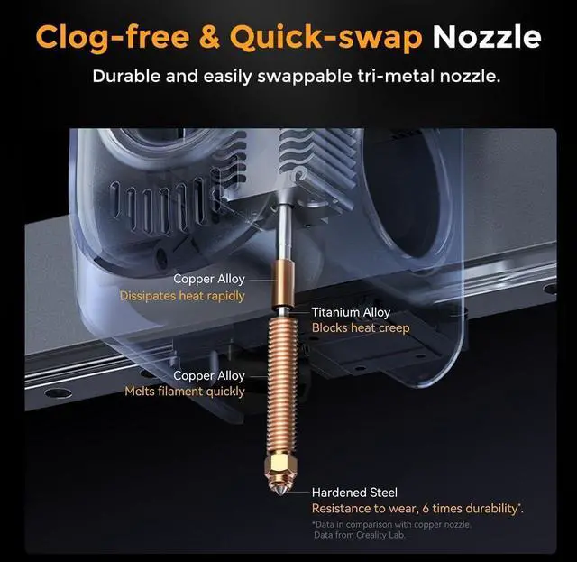 Upgraded Durable Direct Drive Extrusion: Hi 3d printer equips all-metal extruder gears, which are wear-resistant and long-lasting. Durable filament cutter can be magnetically pulled back into position after cutting. An integrated nozzle that is clog-free and allows quick swap. Also a built-in filament run-out sensor in the extruder, the usage of filament is now monitored more closely and precisely for run-out or breakage