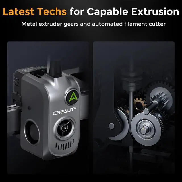 Upgraded Durable Direct Drive Extrusion: All-metal extruder gears are wear-resistant and long-lasting. Durable filament cutter can be magnetically pulled back into position after cutting. An integrated nozzle that is clog-free and allows quick swap. Also a built-in filament run-out sensor in the extruder, the usage of filament is now monitored more closely and precisely for run-out or breakage. Filaments can be unloaded or switched (with CFS) with less residual waste