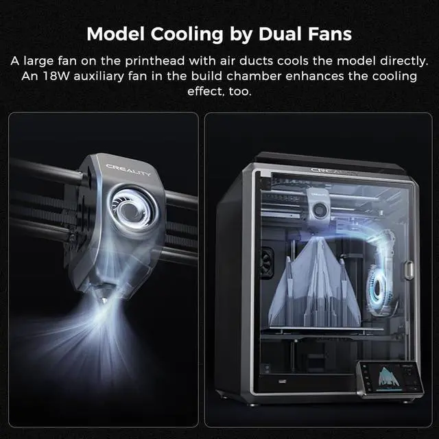 Upgraded Design: K1 3d printer can print via USB drive or Lan, different printing mode meets different customers demands. Smart G-sensor to resolve ringing for high-speed printing. Accurate Z-axis positioning for less Z-banding. The dual fans keep models cool with directional air ducts on the printhead and an auxiliary fan in the build chamber for prompt cooling