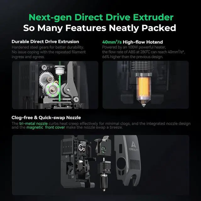 Super Master of Materials: The Creality K2 Plus 3d printer actively maintains a constant temperature of up to 60°C, allowing you to easily print high-end filaments like ASA and PPA. Printed models are warp-resistant and high-strength. High-temp nozzle with hardened steel tip, Supports operating temperatures up to 350°C, easily handling a variety of high-melting-point, wear-resistant engineering filaments